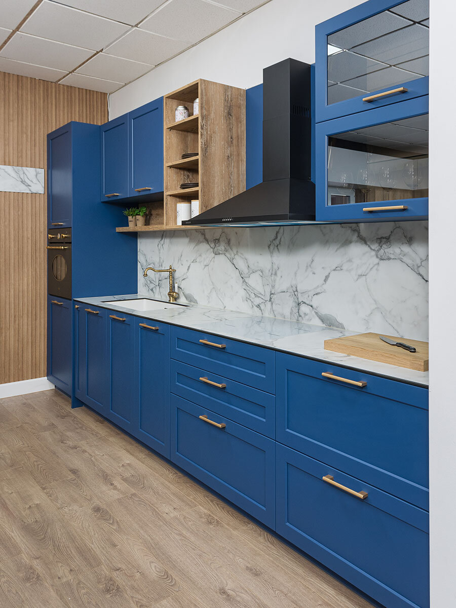 Κουζίνα από γκοφρέ λάκα σε απόχρωση μπλε σκούρο